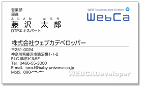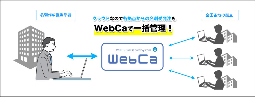 法人向けウェブ名刺受発注システム『WebCa』は、企業様の名刺内製化のお悩みを解決します。自社の名刺規定で瞬時に作成しプレビュー確認、10面付けの印刷データも自動生成します。 ウェブブラウザ上で作成できるクラウドサービスです。